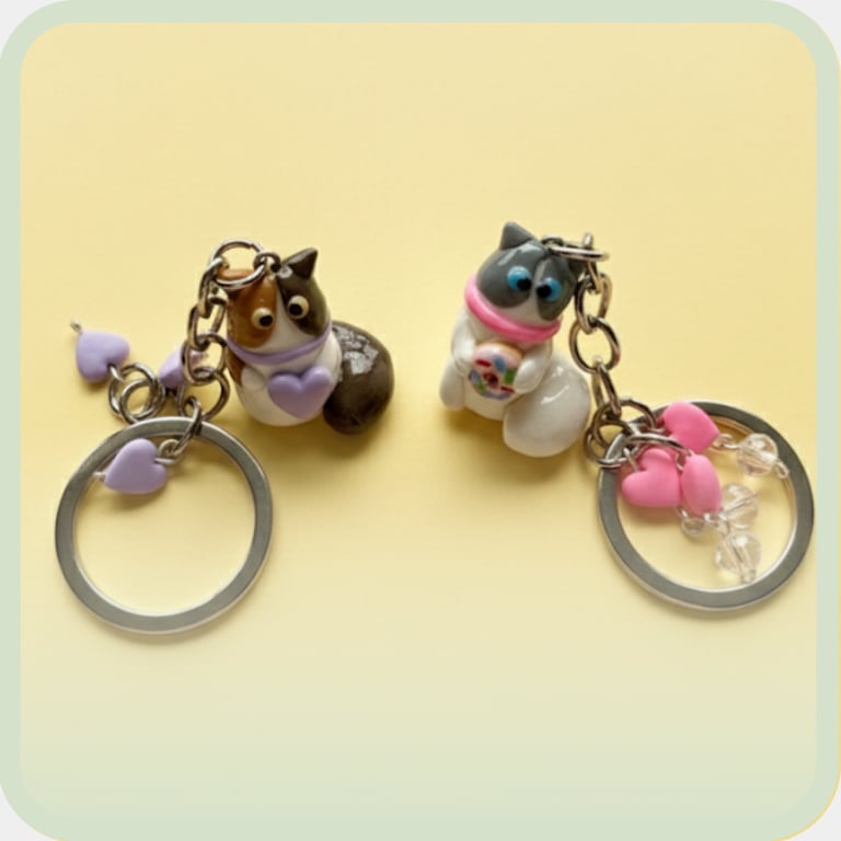 Personalised clay keychains and magnets made for gifting or everyday keepsakes.