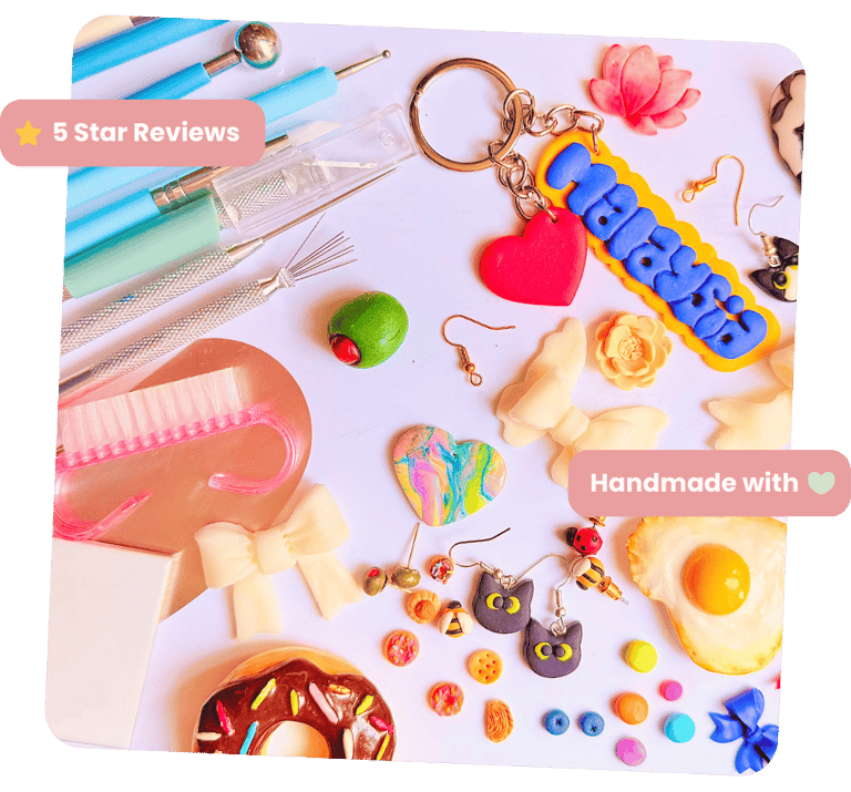 Discover our collection of cute, polymer clay goodies. From earrings to keychains, everything is 100% handcrafted to brighten your day.