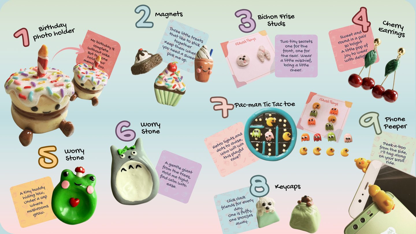 Love surprises? Our Blind Box is a fun custom experience filled with miniature clay creations based on your preferences. Perfect for gifting or treating yourself to a little mystery.