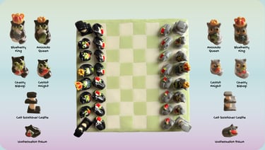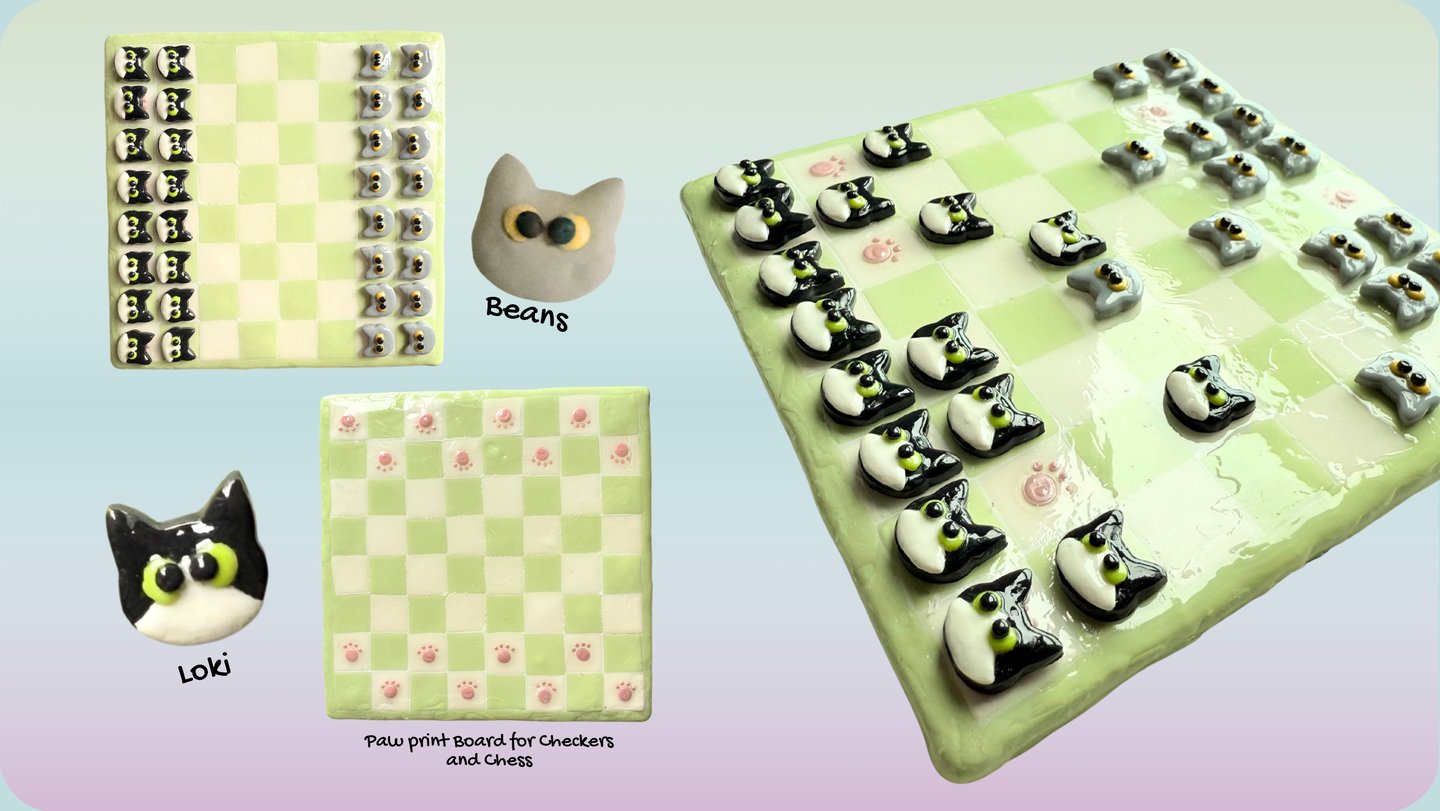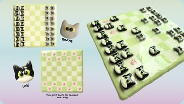 Turn game night into a purrfectly playful experience with our Handmade Cat Chess and Checkers Set. Each piece is carefully crafted by hand and can be customized to look like your own pet, from their fur patterns and colors to their little personality quirks.