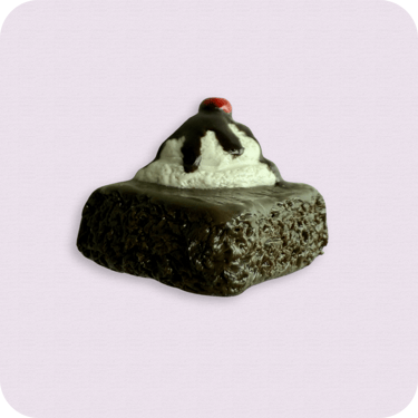 • A tiny brownie and a miniature iced chocolate drink to capture her favorite treats 🍫🥤